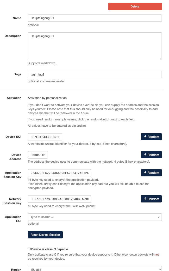 Bei OTAA-Geräten werden Device Address und Session-Kontext im Join-Prozess neu gesetzt. Änderungen an OTAA-Geräten sollten daher nicht wie feste ABP-Parameter behandelt werden.
