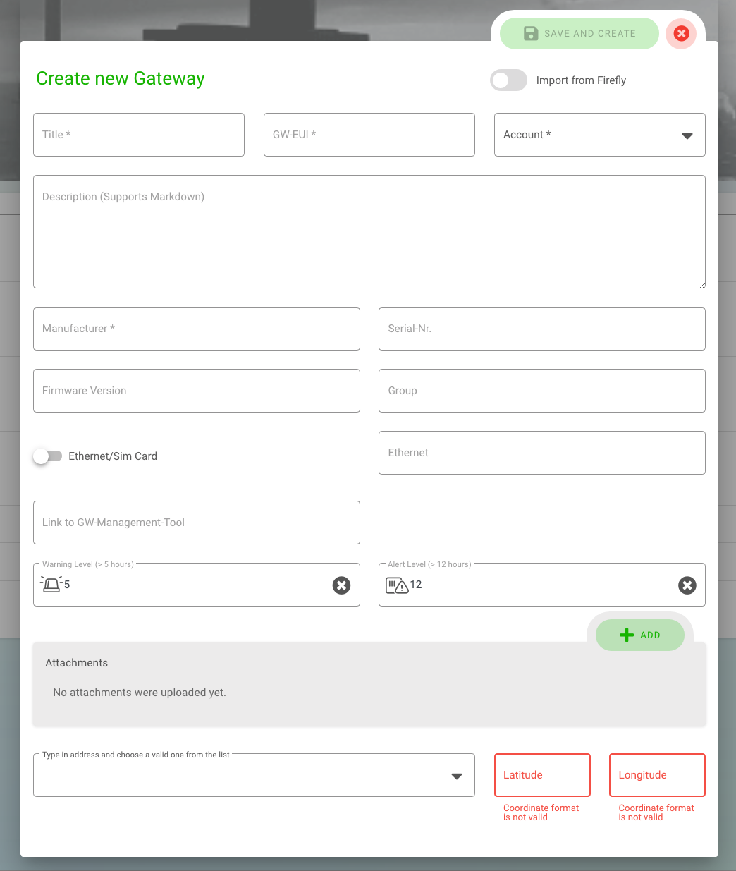 When you have filled in all mandatory fields marked with an asterisk, the save icon will change color and you can click save. The device will immediately appear in the list.