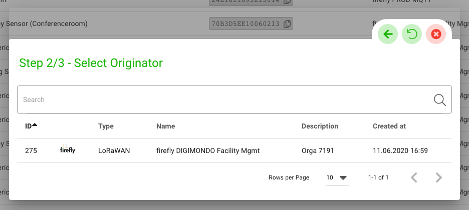Click on the “Add” button. A window opens – then select an originator, e.g. an originator based on DIGIMONDO’s LoRaWAN Network Server firefly.