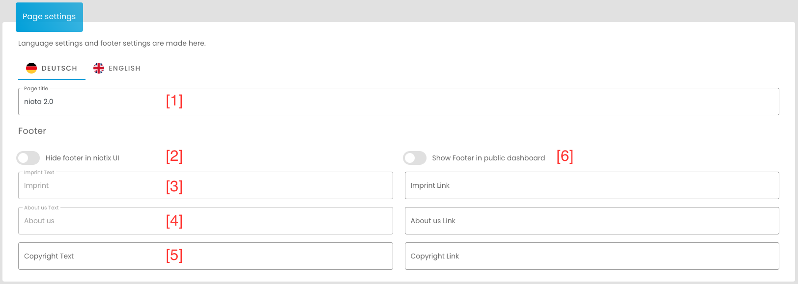 - Show footer in public dashboard:** Enable/disable show footer in user interface. [6]